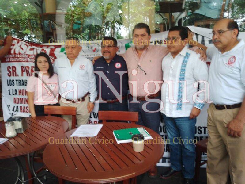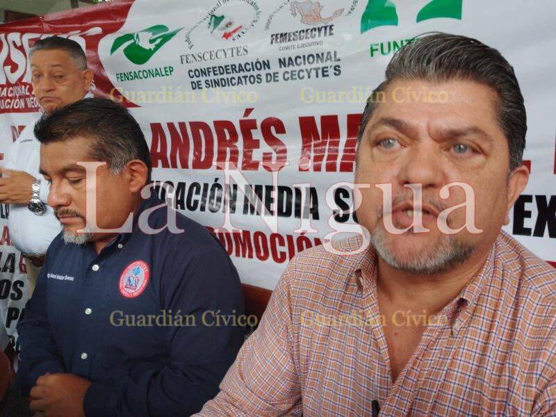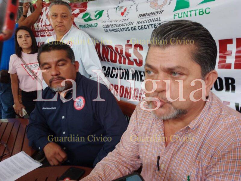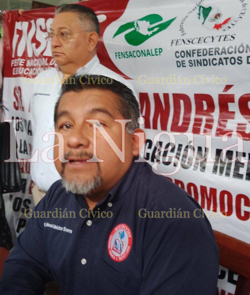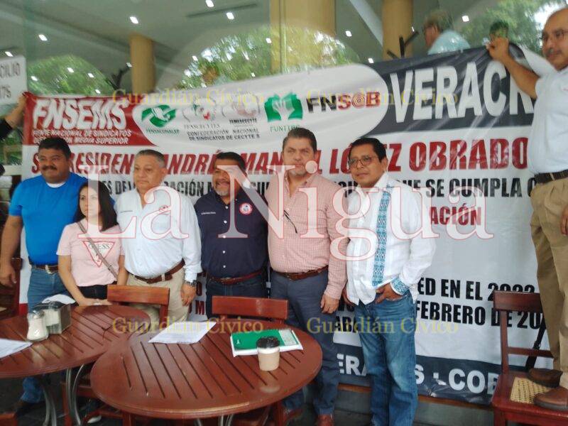 El Ingeniero Manuel Melchor Oliveros, secretario general del Sindicato Único de Trabajadores del Colegio de Estudios Científicos y Tecnológicos del Estado de Veracruz ( CECYTEV), y Luciano Amador Guerrero, en representación del Sindicato Único Independiente de Trabajadores del Colegio Bachilleres del Estado de Veracruz ( SUITCOBAEV), y que pertenecen al Frente Nacional de Sindicatos de Educación Media Superior en el país (FNSEMS), hicieron un pronunciamiento en favor de los trabajadores de la educación media y superior de organismos descentralizados, dijo que desde el mes de diciembre del año 2021 “hemos iniciado una lucha para efectos de dignificar las condiciones salariales, prestaciones y promociones para todos los trabajadores de estos organismo descentralizados, en todo el país somos 120 mil trabajadores, quiénes atendemos a más de 3.5 millones de estudiantes en el país”.