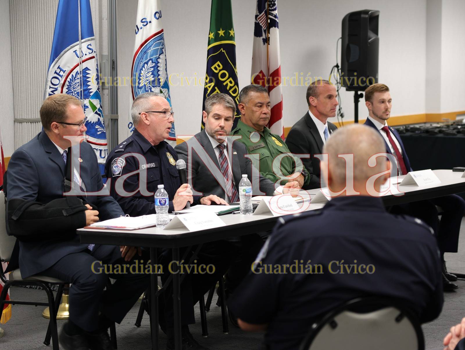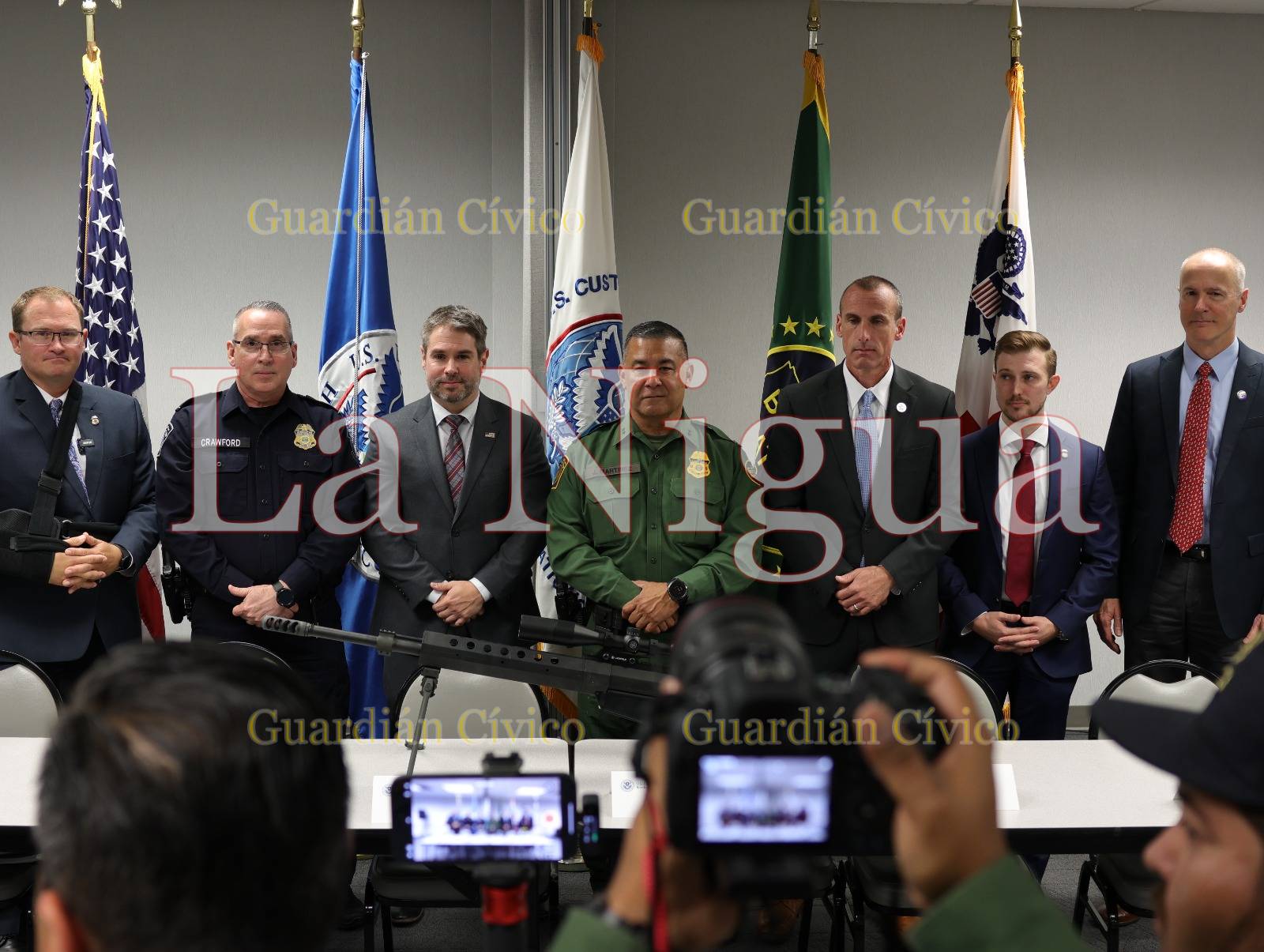 En conferencia de presa en Laredo, Texas estuvo presente el Departamento de Seguridad Nacional, la Oficina de Alcohol, Tabaco, Armas de Fuego y Explosivos (ATF), Investigaciones de Seguridad Doméstica (HSI), CBP, Servicio Postal de Estados Unidos (USPS), Abogado de Estados Unidos (AUSA), Patrulla Fronteriza, Seguridad Nacional (HSI) de Inmigración y Control de Aduanas (ICE) de San Antonio y el director interino de operaciones de campo de CBP.
