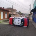 PAPANTLA,VER.- Vecinos y personas, que se dirigían a su centro de trabajo, reportaron una espectacular volcadura de una unidad de alquiler en las inmediaciones del primer cuadro de la ciudad, ocasionando la movilización de personal y unidades de emergencia hasta dicho lugar