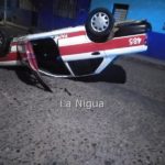 Para impactarse contra una banqueta y terminar volcado, tratándose del automóvil Nissan Tsuru con colores blanco con rojo con número económico 485 y sin placas de circulación pero con un permiso provisional a nombre de Alfredo Hernández de esta cabecera municipal.