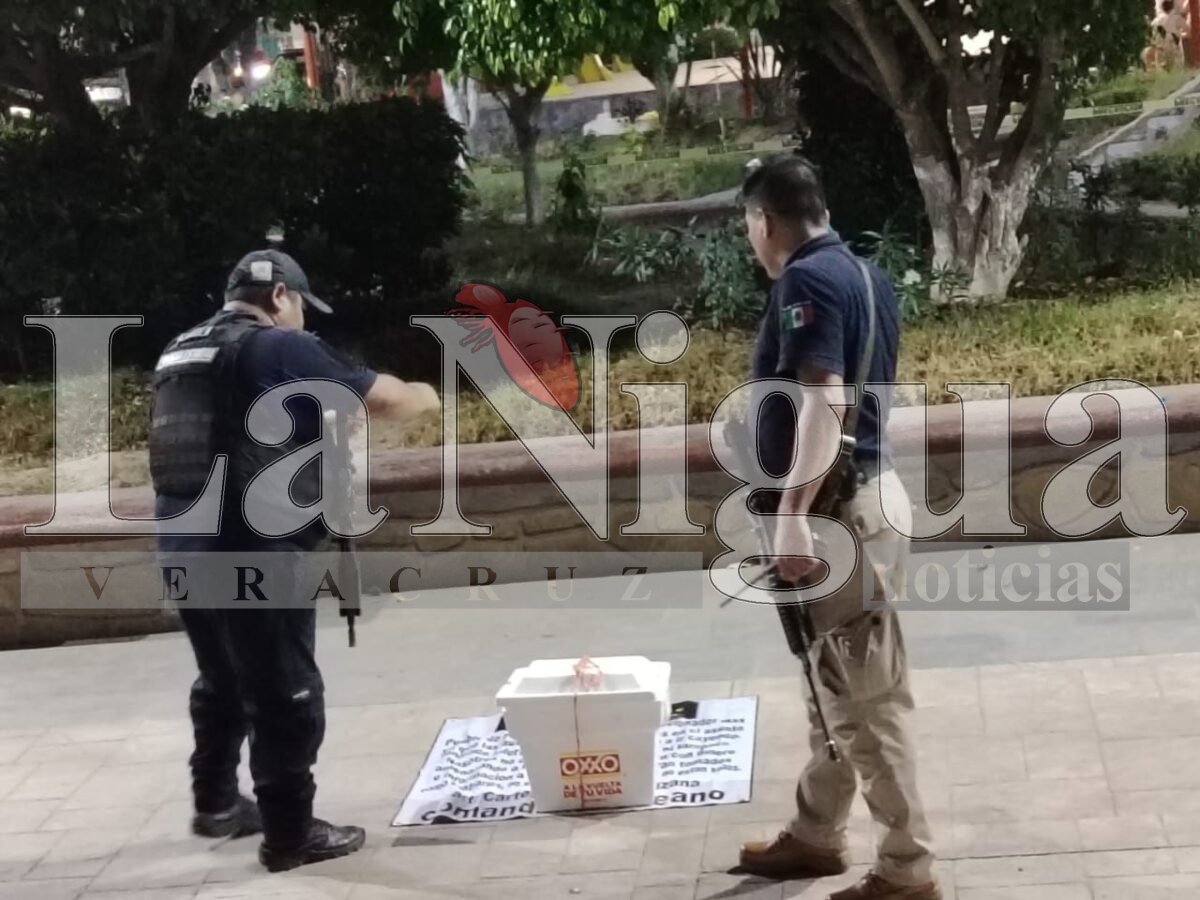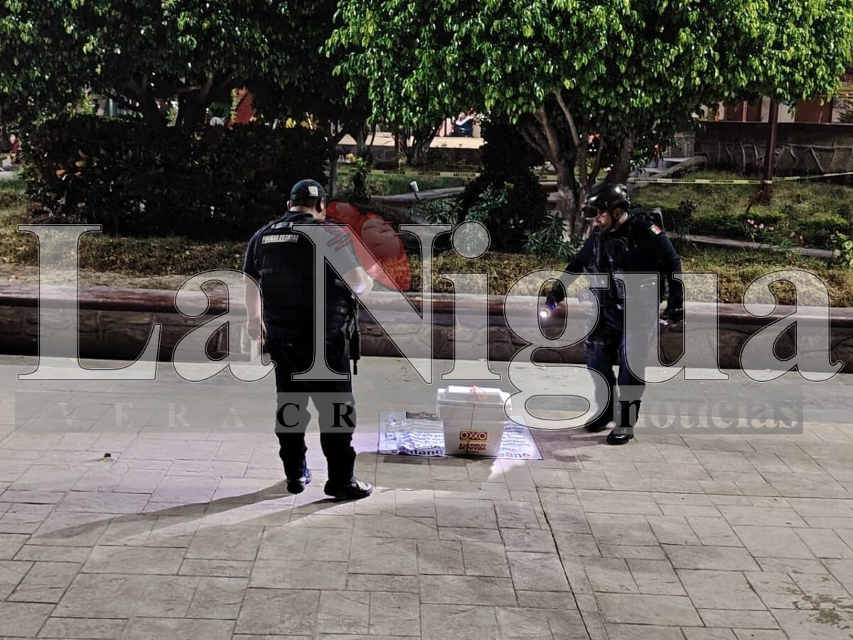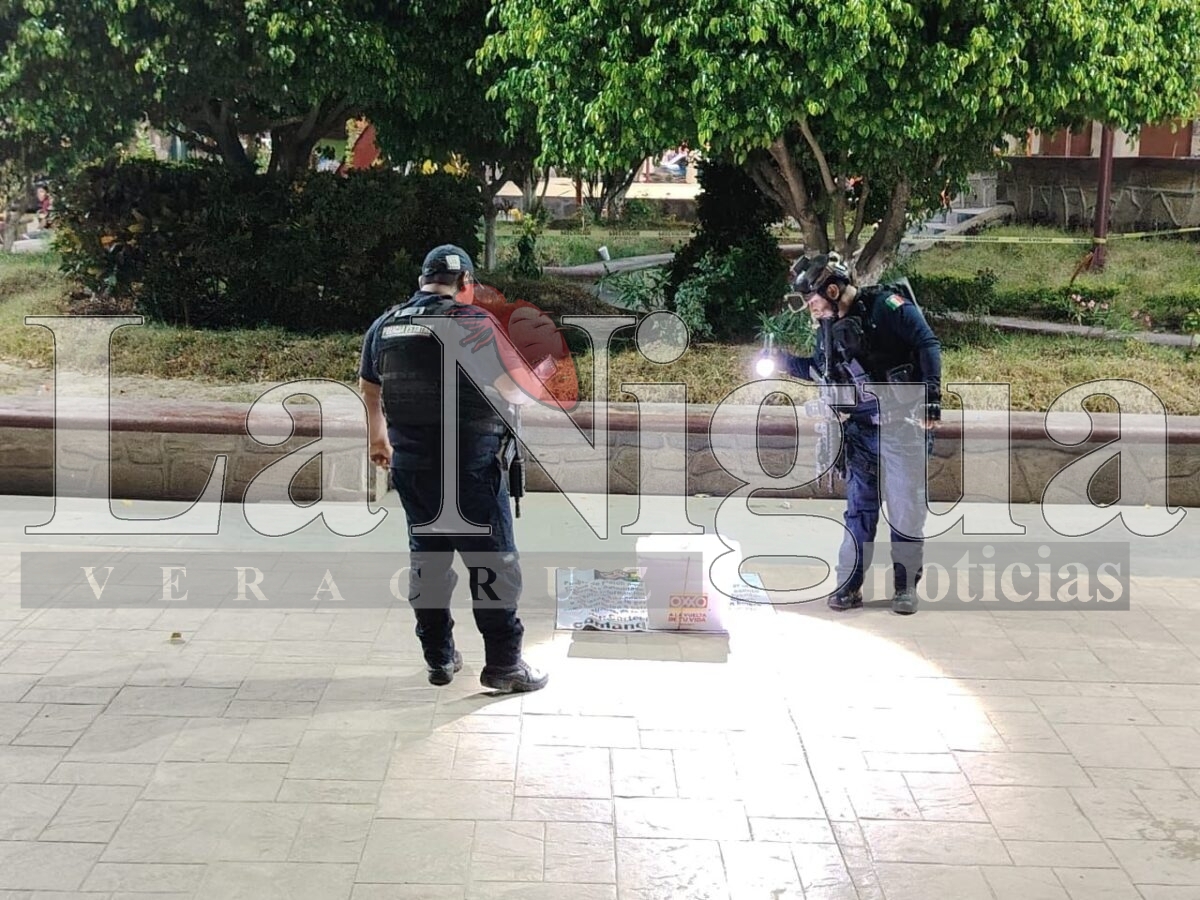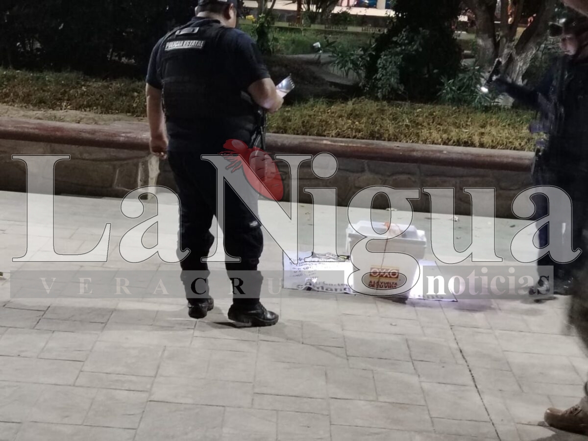 Platón Sánchez, Ver.- Un fuerte dispositivo de seguridad se llevó a cabo en el parque de este municipio luego de que personas desconocidas dejarán una hielera con una lona, provocando la movilización de la policía municipal y de la policía de proximidad con base en Chalma.
