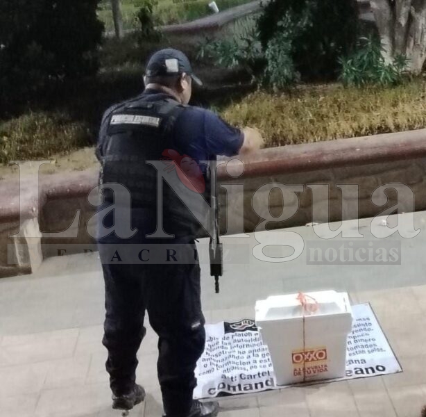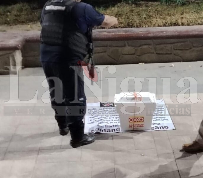 Tras pasar los minutos, se confirmó que al interior de la hielera se encontraba una cabeza humana, en la lona que también dejaron se notaba un texto amenazante, dando a entender que había “iniciado la limpia”.