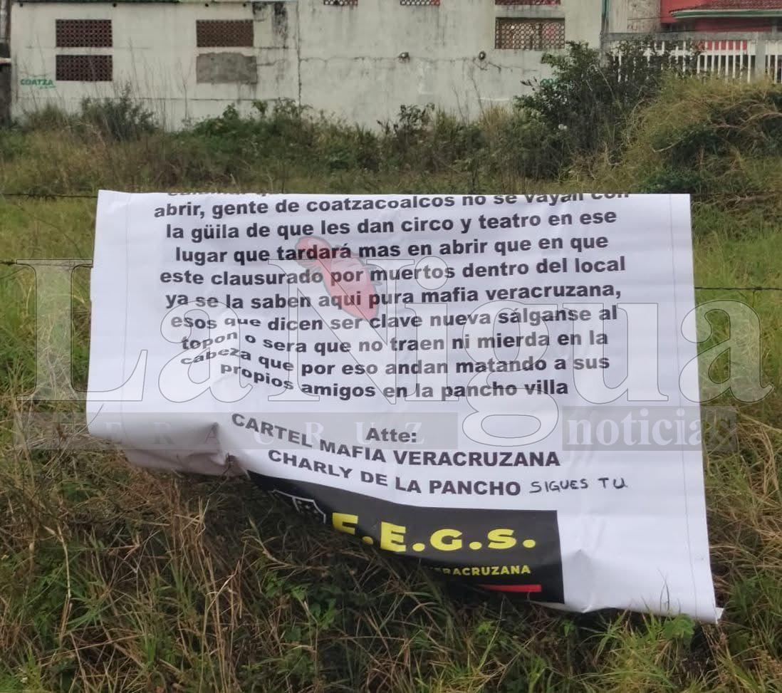 Coatzacoalcos, Ver. — La violencia y el miedo vuelven a instalarse en la colonia El Tesoro. La mañana de este jueves 13 de febrero, la calle Monseñor Carlos Talavera fue nuevamente escenario de un hecho alarmante, luego de que personas no identificadas colocaran una narcolona con amenazas presuntamente firmadas por una organización criminal.