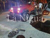 El frágil automóvil quedó destrozado de la parte frontal, el dueño de la Jeep Omar Betancourt al principio notó que su Jeep no tenía daños, solo un raspón en el guardafango, por lo que pedía retirarse del lugar y que no iba a reclamar daños, sin embargo al avanzar notó que el eje estaba corrido y al avanzar tronaba, pidiendo de inmediato la reparación de daños.
