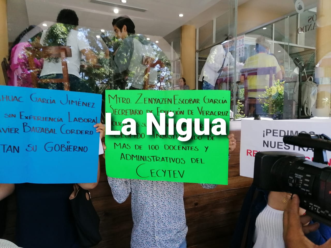 reinstalados en nuestra fuente de trabajo de los 65 trabajadores despedidos, ya que varios de los trabajadores tenían 19-15-7 años de antigüedad, no nos liquidan conforme a la ley y aparte este director general de CECYTEV Javier Baizabal Cordero, siempre está diciendo que es muy amigo del gobernador y que está protegido que no lo van a mover, que hagamos la demanda correspondiente y va a tardar 10 años en resolver y ya no va a estar, así también hay mucho acoso laboral.