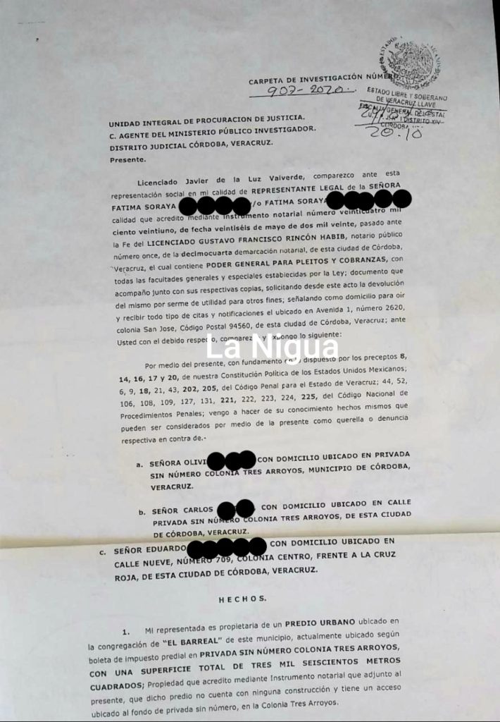 Se informó que la querella es en contra de Eduardo S. A., médico internista originario de Tierra Blanca, Oliva S.Z., oriunda del municipio de Tepatlaxco así como Carlos V., en agravio de la señora Fátima Soraya C.