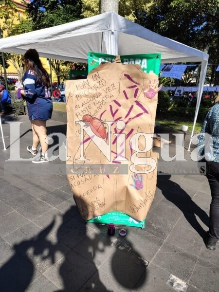 Orizaba, Ver.- En el marco del Día Internacional de la Eliminación de la Violencia contra la Mujer, integrantes del colectivo Marea Verde Altas Montañas instalaron un “tendedero de denuncias” en el parque Apolinar Castillo, en Orizaba. Este acto buscó visibilizar los diversos tipos de violencia que enfrentan las mujeres diariamente y la falta de respuesta de las autoridades, desde casos de acoso hasta feminicidios.