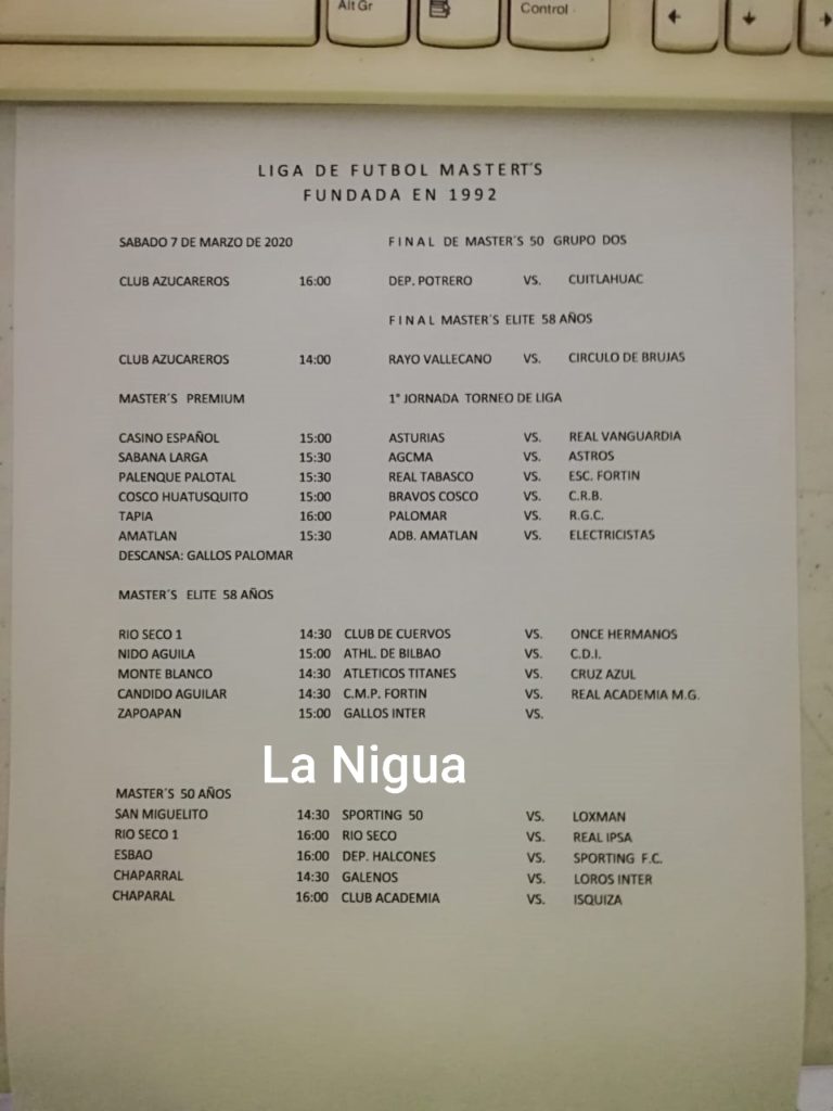 Roberto Luévano Vega, presidente de la Liga de Futbol de los Masters, fundada en 1992, dijo a Nuevo Sol, que en las instalaciones del Club Azucareros se jugarán las dos finales, una a las 14 y otra a las 16 horas.