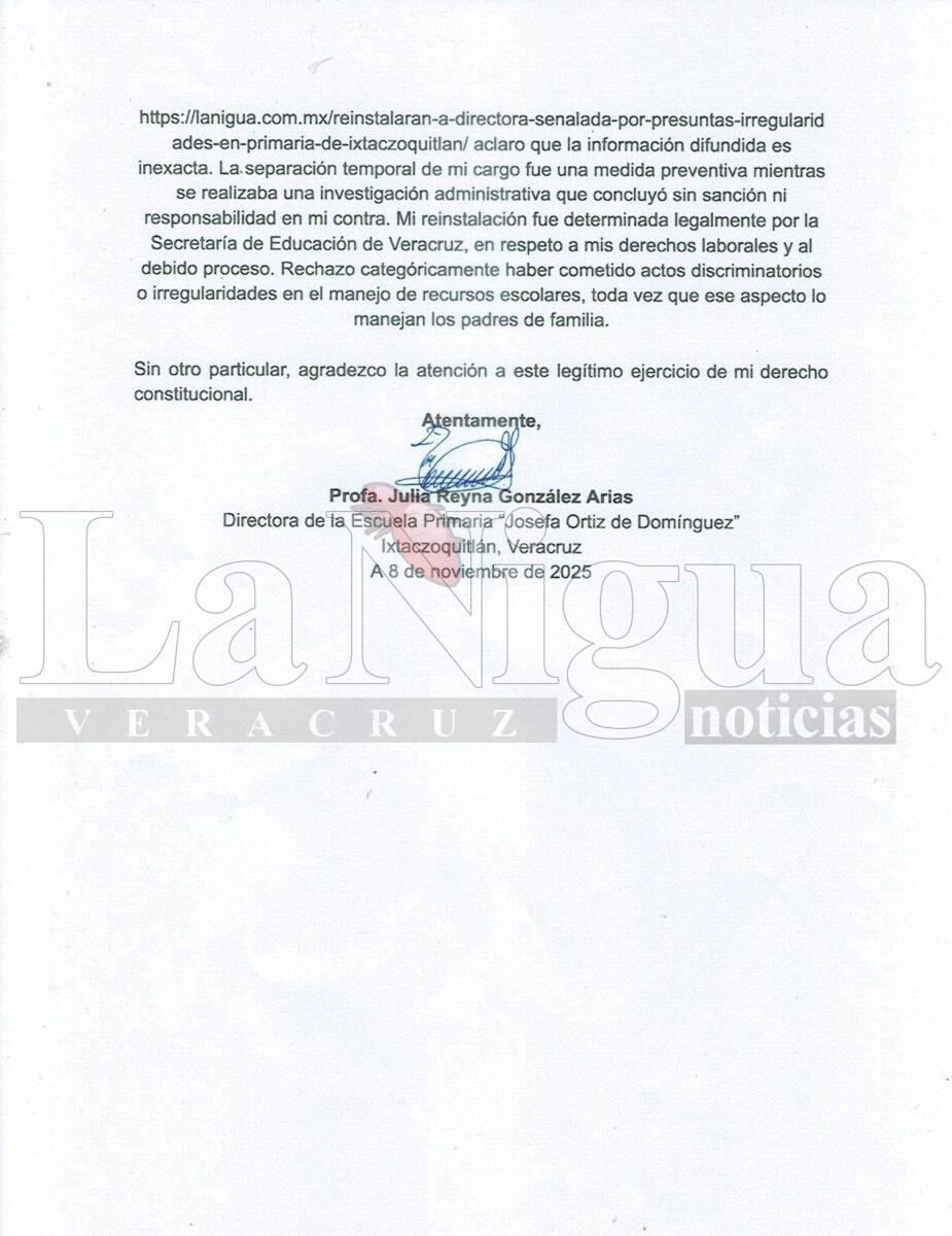 Reinstalarán a directora señalada por presuntas irregularidades en primaria de Ixtaczoquitlán8 de noviembre, 2025