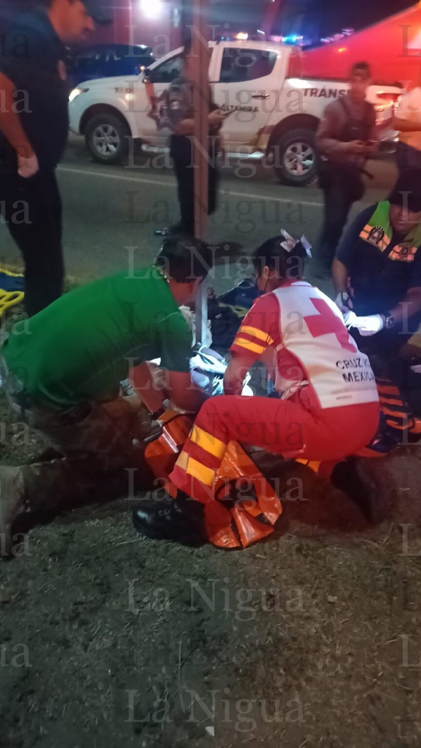 Altamira, Ver.- Inconsciente y con heridas graves resultó un joven motociclista que anoche derrapó en la avenida de la Industria, a la altura del crucero del 20 en Altamira.