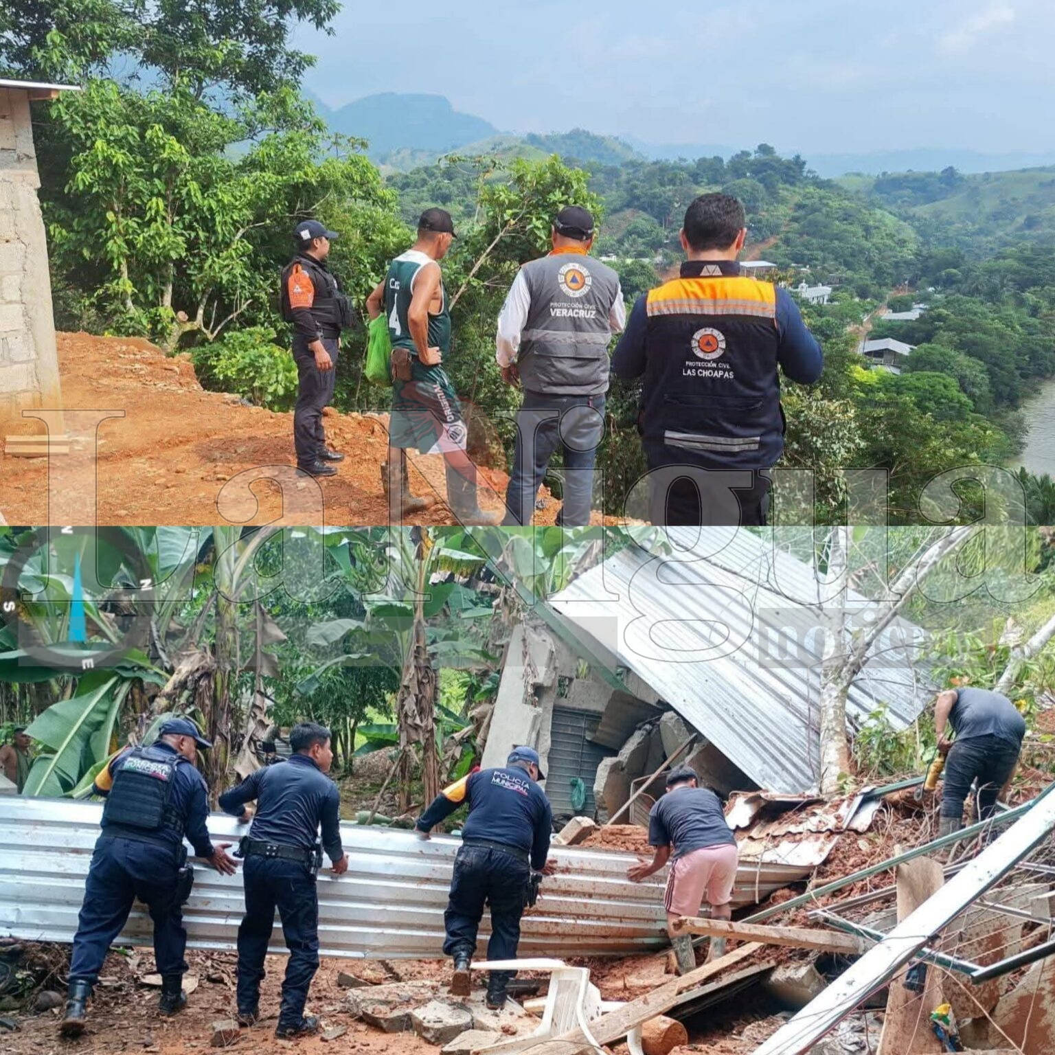 Las Choapas, Ver. – Las fuertes lluvias que se han registrado en las últimas horas provocaron el derrumbe de un cerro y varios desgajamientos en la zona rural del municipio, particularmente en el ejido Revolución, donde una familia estuvo a punto de ser sepultada por la masa de lodo y piedras.