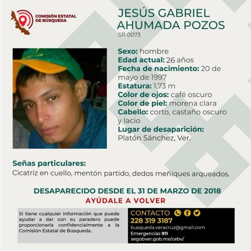 La Comisión Estatal de Búsqueda del Estado de Veracruz, solicita de su colaboración para localizar a dos jóvenes Platonences, desaparecidos desde el 31 de Marzo de 2018; cualquier información contactarse al número y/o correo que aparece en el margen del boletín.