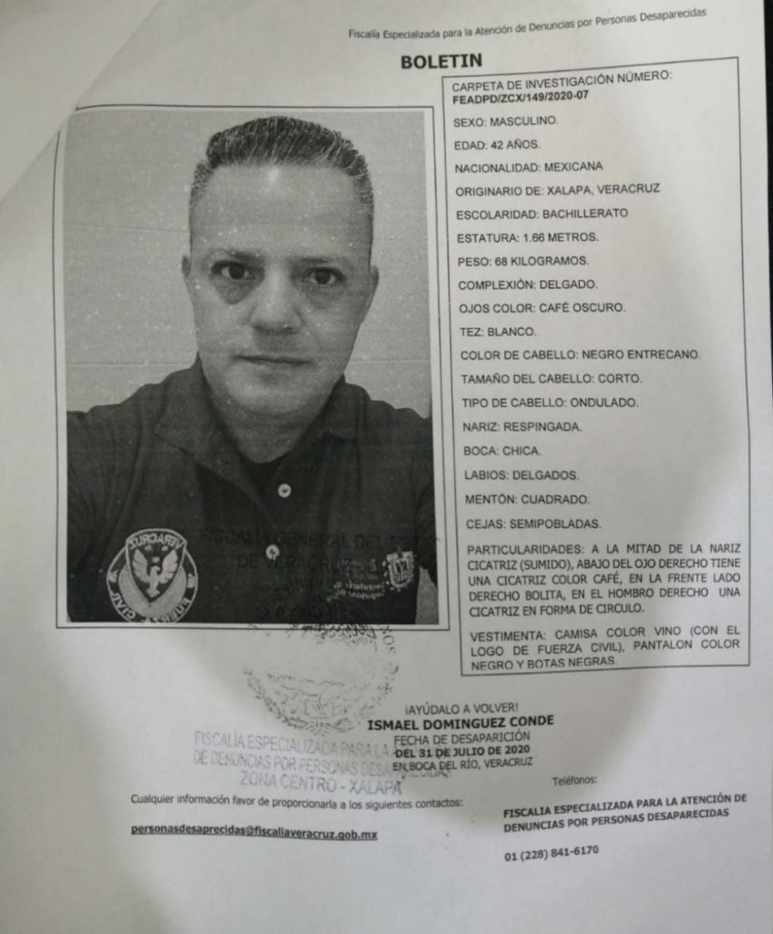 elementos de la Secretaría de Seguridad Pública con base en Boca del Río, un hombre y una mujer, han sido reportados como desaparecidos. Se trata de Yeraldi Cortez Pérez, de 38 años, de 1.55 de estatura e integrante de la Fuerza Civil, e Ismael Dominguez Conde. Ambos portaban el uniforme de la corporación cuando desaparecieron sin que se tengan noticias de sus paradero. La SSP –tratando de ocultar los hechos- aun no emite un comunicado al respecto, pero la familia de ambos ha usado las redes sociales para difundir la desaparición. Seguiremos informando…[/vc_column_text][/vc_column][/vc_row]