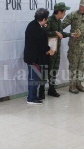Quienes, le entregaron al jovencito su identificación militar, así como un obsequio muy especial al jovencito, quien no ocultó su satisfacción por estas deferencias.