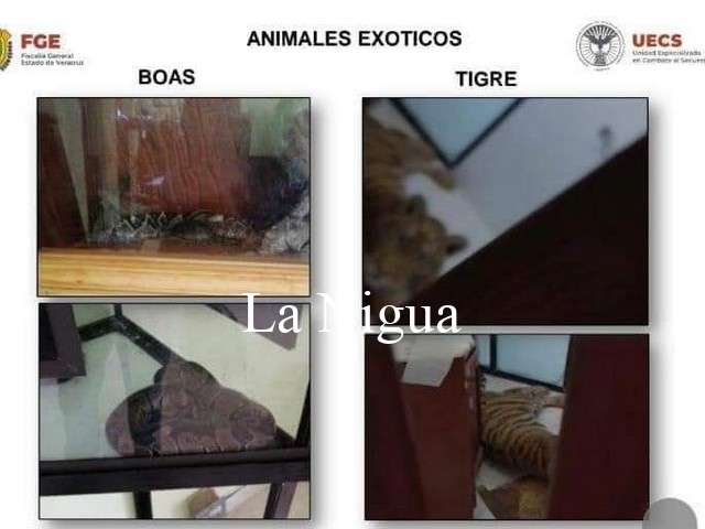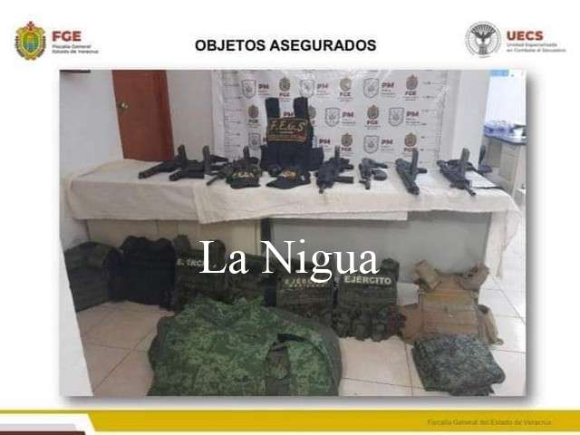 La Fiscalía General del Estado informo este viernes, que derivado de un operativo en las colonias Manuel Ávila Camacho y fraccionamiento Petrópolis del municipio de Tuxpan, la Unidad Especializada en Combate al Secuestro, con apoyo de elementos de la Policía Ministerial y del Ejército Mexicano, detuvieron a cinco presuntos delincuentes y se aseguraron 7 armas largas, 3 granadas de fragmentación, equipo táctico como chalecos antibalas, rotulados con la leyenda “Ejército Mexicano”, fornituras, fundas de arma corta y tres animales exóticos.