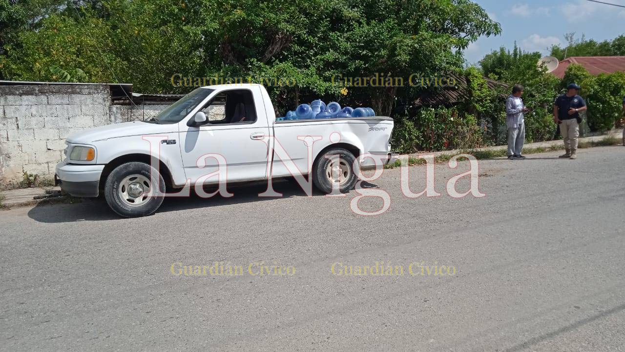 Se trata de una camioneta marca Ford tipo lobo color blanco, cuya unidad resultó dañada de la defensa trasera, salpicadera del costado izquierdo y focos destrozados.