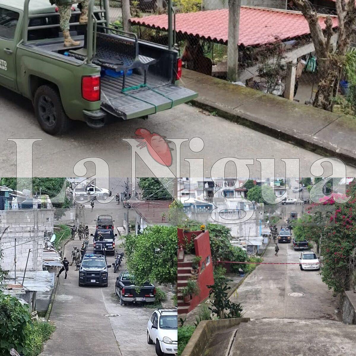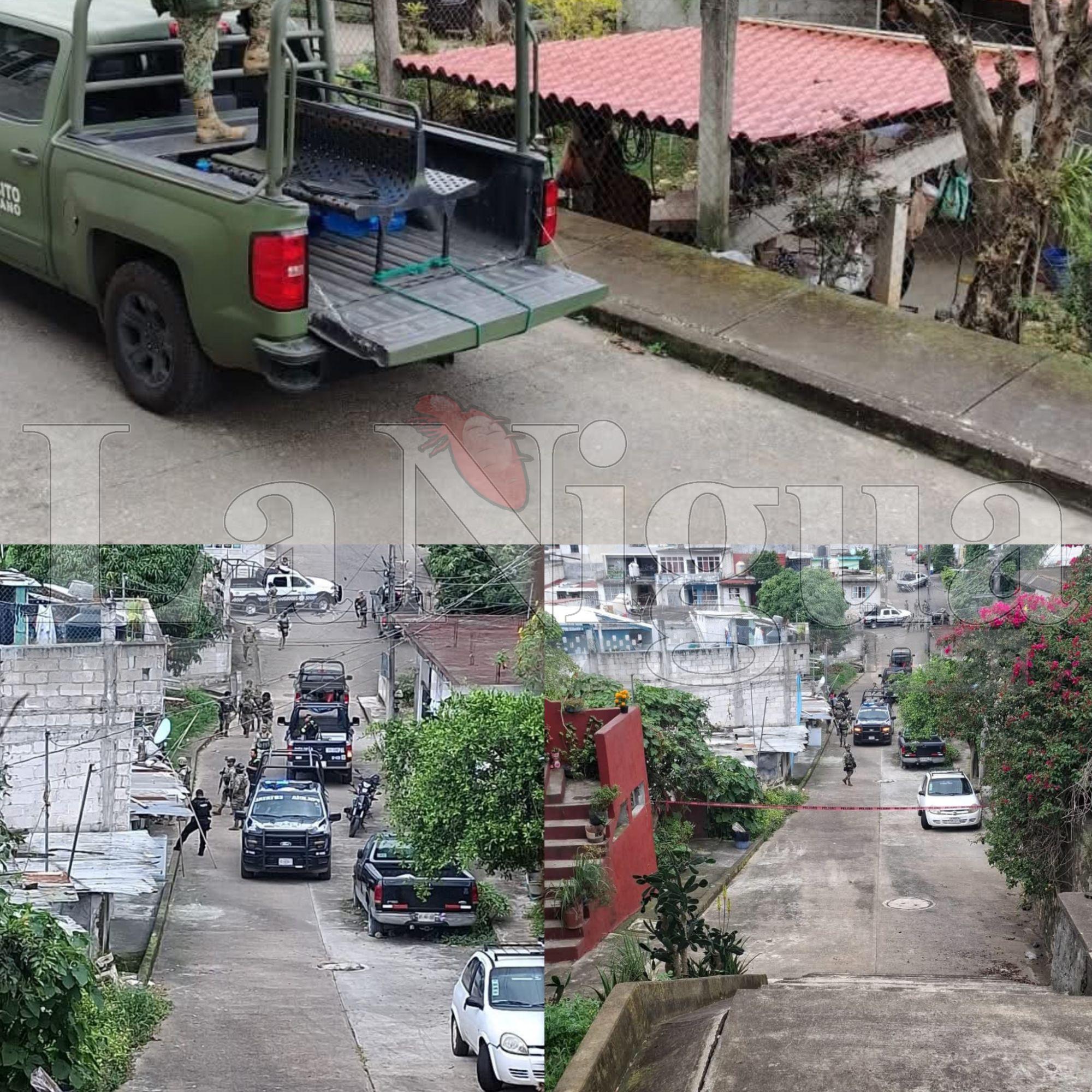 De acuerdo con los primeros reportes, los elementos de seguridad implementaron un cerco militar en la zona y efectuaron un cateo en un inmueble señalado como presunta casa de seguridad.