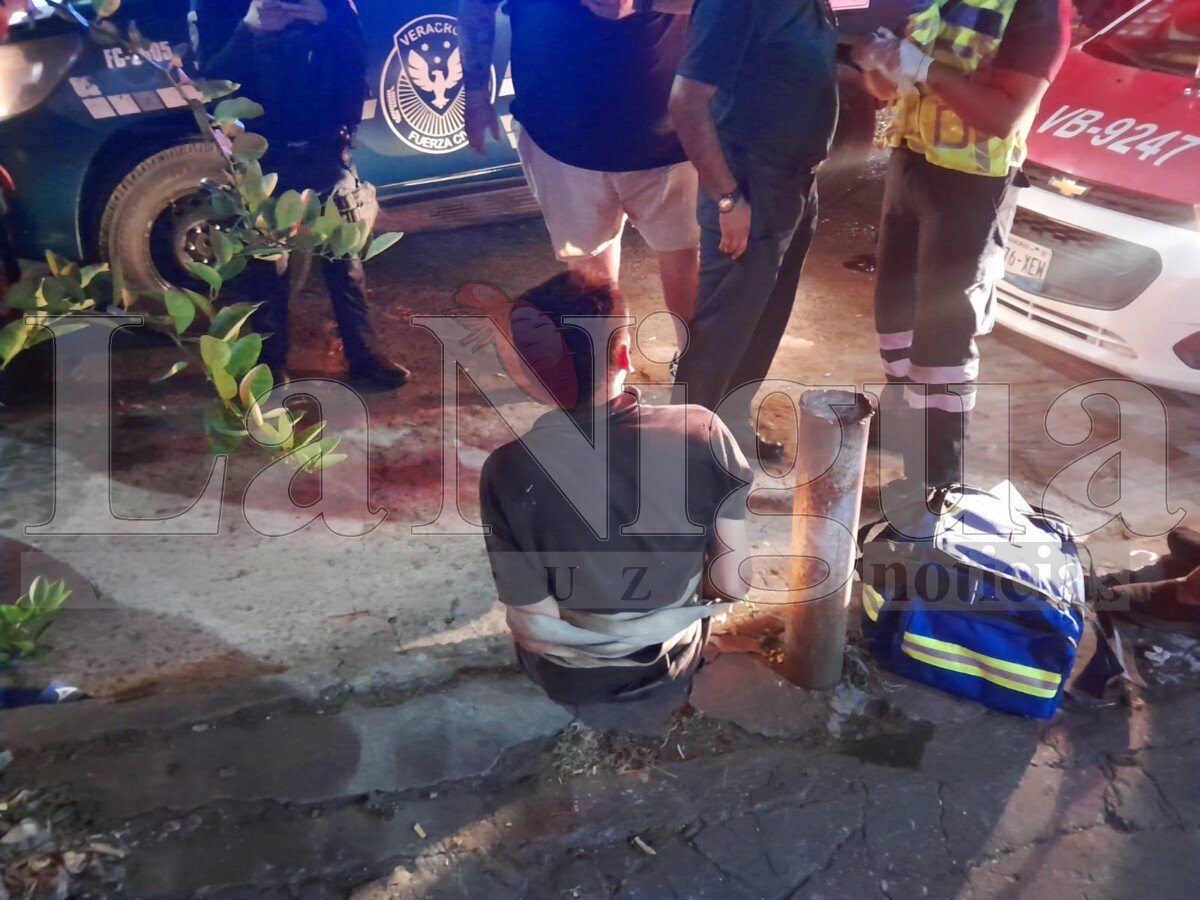 Fue minutos antes de la media noche cuando el sujeto de aproximadamente entre 25 y 30 años, sorprendió por la espalda a un hombre que caminaba por la avenida Salvador Díaz Mirón sin ningún motivo aparente.