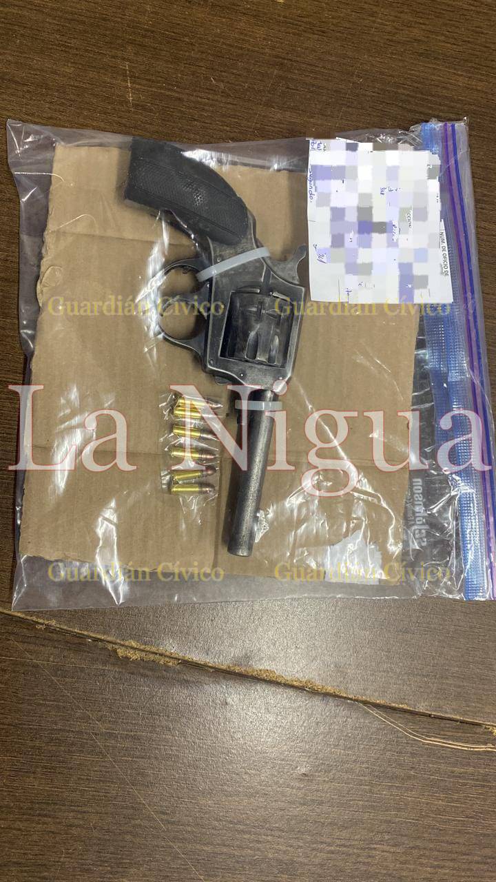 Siendo alcanzado, quien al realizar una revisión corporal de acuerdo a los protocolos, se le localizo una arma de fuego tipo revolver cartuchos útiles, 18 dosis de droga tipo cristal, en un costal dónde es su interior, ubicaron una hacha, una tabla junto con un bate de béisbol con puntillas de clavos.