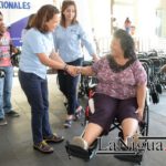 Un total de 27 aparatos funcionales se entregaron, siendo una andadera, una silla de ruedas con eleva piernas, 2 pares de muletas y 23 sillas estándar de adulto. Son 321 apoyos otorgados desde el inicio de la administración a la fecha. Los atados de láminas fueron mil 150 piezas para 115 familias correspondientes a la tercera campaña.