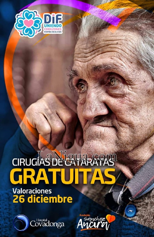 Fortín, Ver., 13 de diciembre 2019.- Después de que la Sra. Sol Jordan de Mansur, presidenta de DIF Fortín anunciara el pasado 5 de diciembre durante su 2do. Informe de Actividades, el trabajo en conjunto con Hospital Covadonga y Fundación Sánchez Ancira, el Sistema Municipal para el Desarrollo Integral de la Familia (DIF Fortín) inició esta semana la convocatoria para Cirugía de Cataratas para personas de escasos recursos, invitando a los interesados a acercarse a las instalaciones del organismo asistencial para obtener más información al respecto.