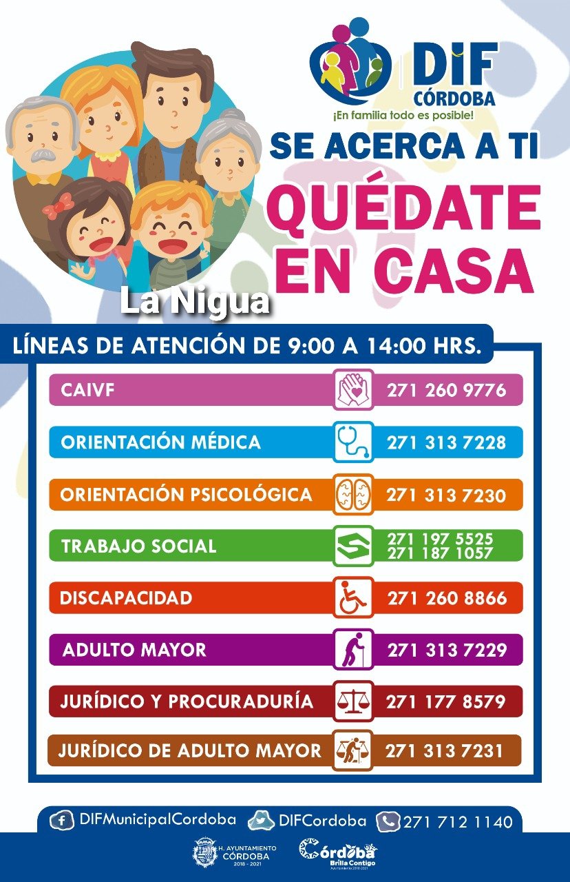 Córdoba, Ver.- A pesar de haber concluido este fin de semana la Jornada Nacional de Sana Distancia, el Sistema Municipal para el Desarrollo Integral de la Familia (DIF), informa a todos los cordobeses que continuará con la atención vía telefónica “Quédate en Casa” a fin de seguir las medidas sanitarias que cuiden la salud de la población del COVID-19.