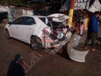 Que chocó contra la parte posterior de un automóvil marca Toyota, tipo Corolla, color blanco, con placas LJH-816-A del Estado de México (Edomex), en el que viajaba tres adultos y tres menores, quienes salieron ilesos.