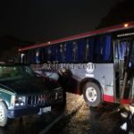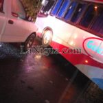 El primer accidente ocurrió alrededor de las 18:30 horas del domingo, cuando un autobús de la empresa de transportes Galaxi número económico 222, impacto a una camioneta tipo pickup GMC color verde, a la altura de la entrada a la localidad de La Concha.