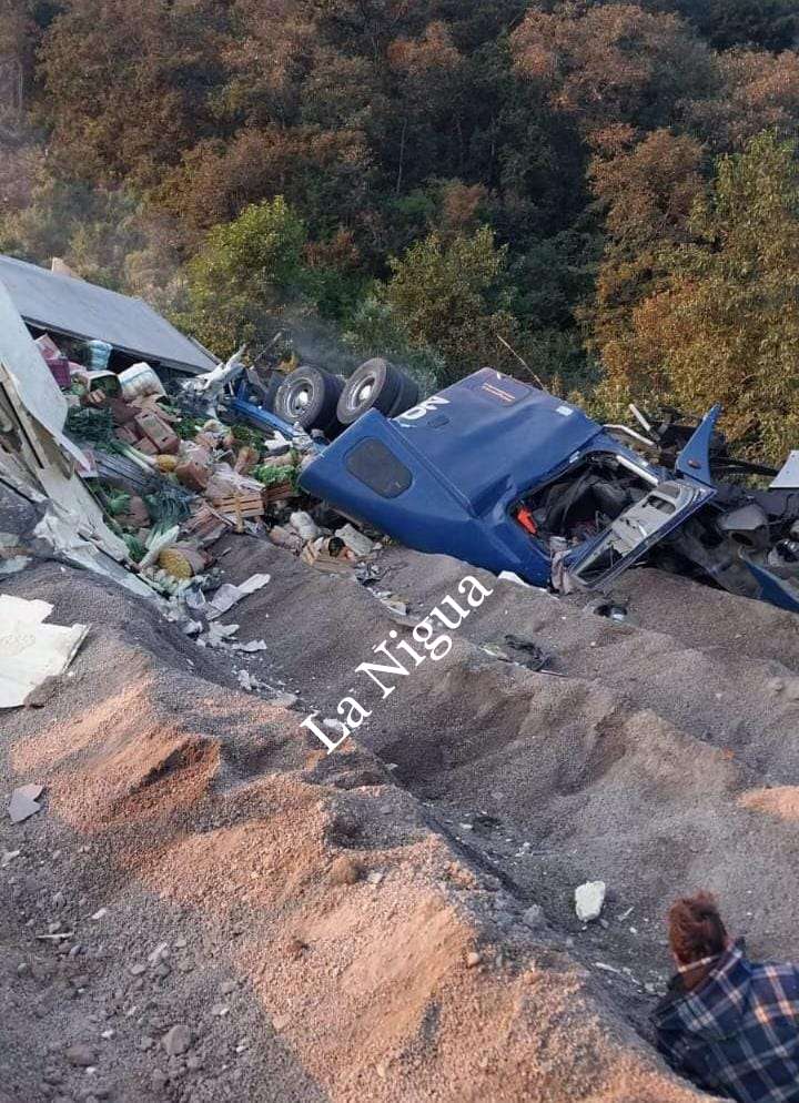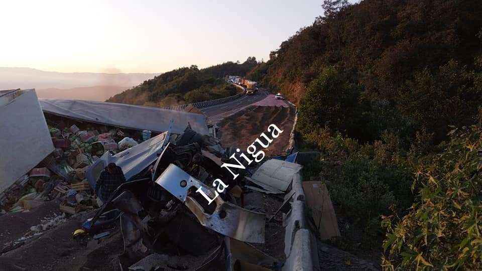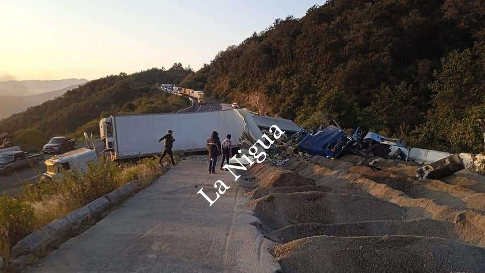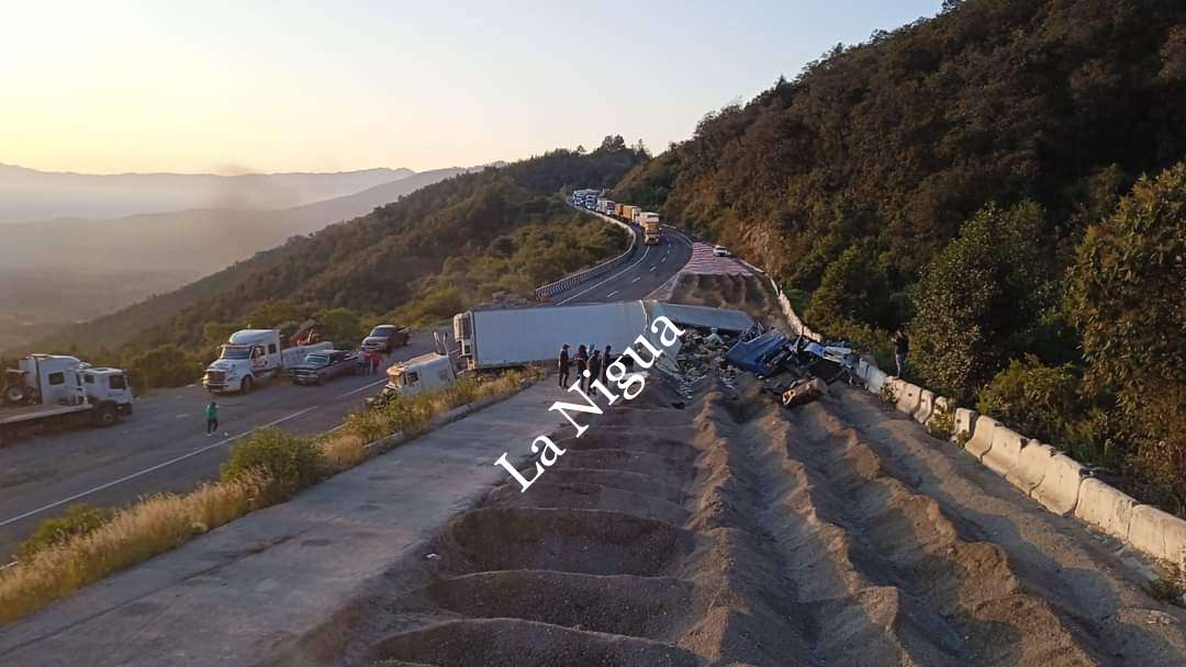 Versiones indican que la primera unidad entró a la rampa y volcó de forma aparatosa sobre los monticulos de tierra y escombro, e instantes después otro vehículo también se quedó sin frenos y chocó contra la caja seca que llevaba enganchado el primer tráiler.