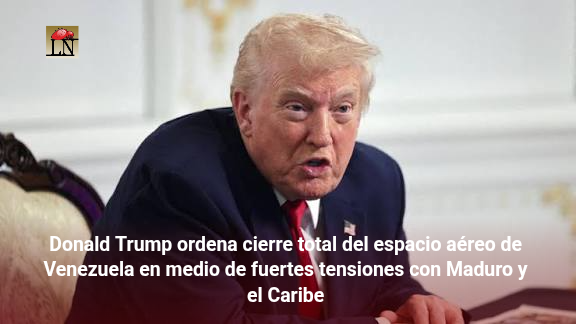 El presidente de Estados Unidos, Donald Trump, anunció este sábado el cierre total del espacio aéreo de Venezuela, según un mensaje publicado en su red social Truth Social, elevando aún más la tensión entre Estados Unidos y Venezuela. La orden fue dirigida a aerolíneas, pilotos y presuntos grupos criminales, aunque el mandatario no explicó las razones específicas detrás de esta decisión.