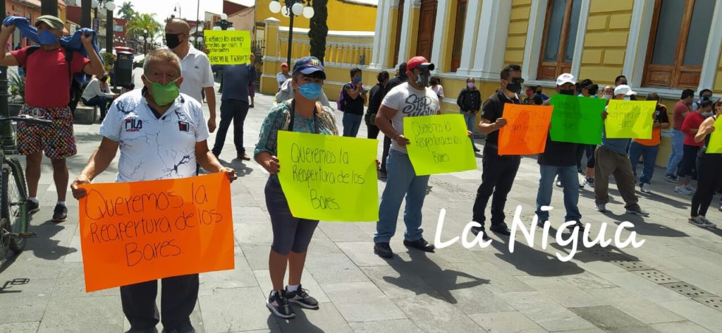 Orizaba, Ver , – Un poco más de 50 propietarios de bares y cantinas de esta ciudad, se manifiestan de manera pacífica en la explanada del palacio municipal la mañana de este lunes, en demanda a qué se fije una fecha para abrir sus negocios.