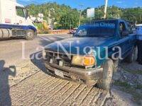 Tras la llegada de los agentes de tránsito, el conductor había tomado camino con dirección hacia la salida del municipio, un oficial le dio alcance y le notificó que su unidad iba a quedar bajo resguardo de la autoridad tras haber ocasionado daños en los señalamientos que son propiedad federal.