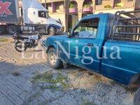 Tantoyuca, Ver.- Un conductor en completo estado de ebriedad estuvo a punto de volcar sobre la carretera municipalizada, pero o salvo el muro metálico en donde se impactó y destrozo la parte frontal de la camioneta, tras el fuerte impacto, el ebrio conductor como pudo se orilló cerca metros adelante y salió a buscar un talachero para cambiar la llanta que explotó tras el fuerte choque y así poder continuar su camino, no se imaginó que los conductores que se percataron de este accidente pidieron el auxilio de los oficiales de vialidad.
