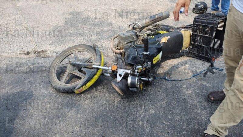 Tras el fuerte impacto, el motociclista, identificado con el nombre de Ramón García, vecino del poblado de Crucero Palmito, resultó con una lesión en el rostro, además de golpes en brazos y piernas.
