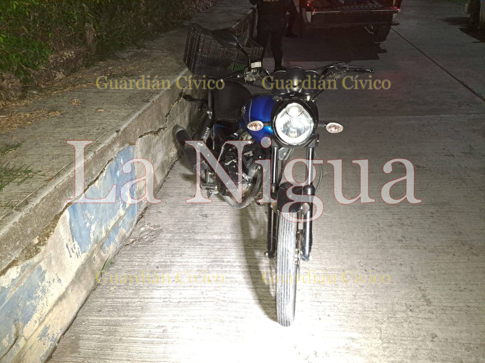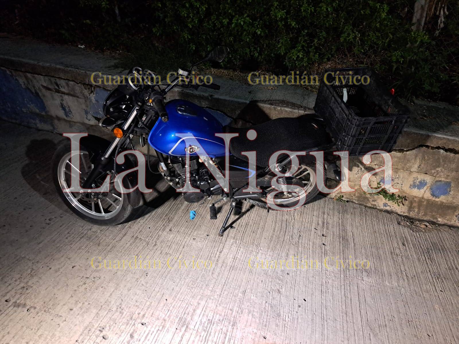 La policía la llegar hasta la calle mencionada, se encontraron con una persona que estaba en el pavimento, este fue auxiliado, sin embargo, comenzó a agredir a los uniformados, por lo que decidieron llevarlo a la cárcel preventiva y la motocicleta Italika RC150 color azul con negro fue llevada al corralón local