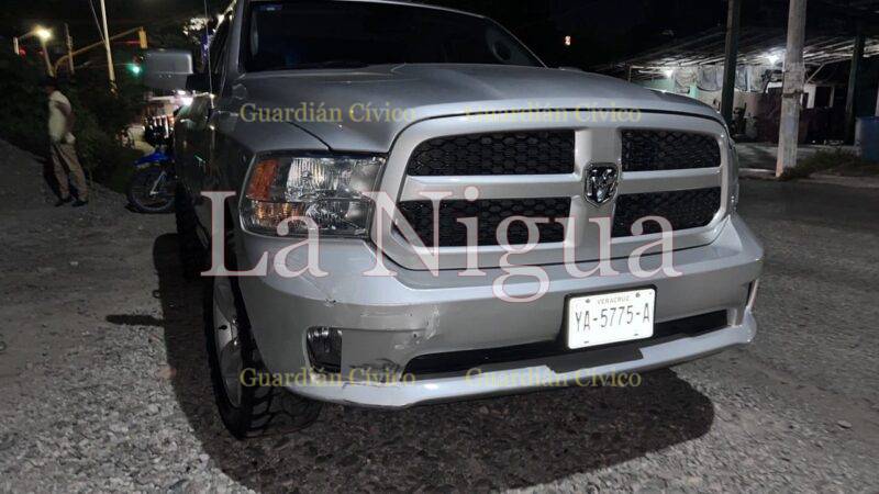 A decir de testigos, el conductor de una camioneta RAM, de color gris, identificado con el nombre de Benito “N”, no tomó precaución e impactó por alcance a un vehículo Nissan, Tsuru, de color blanco.