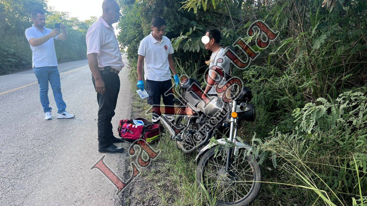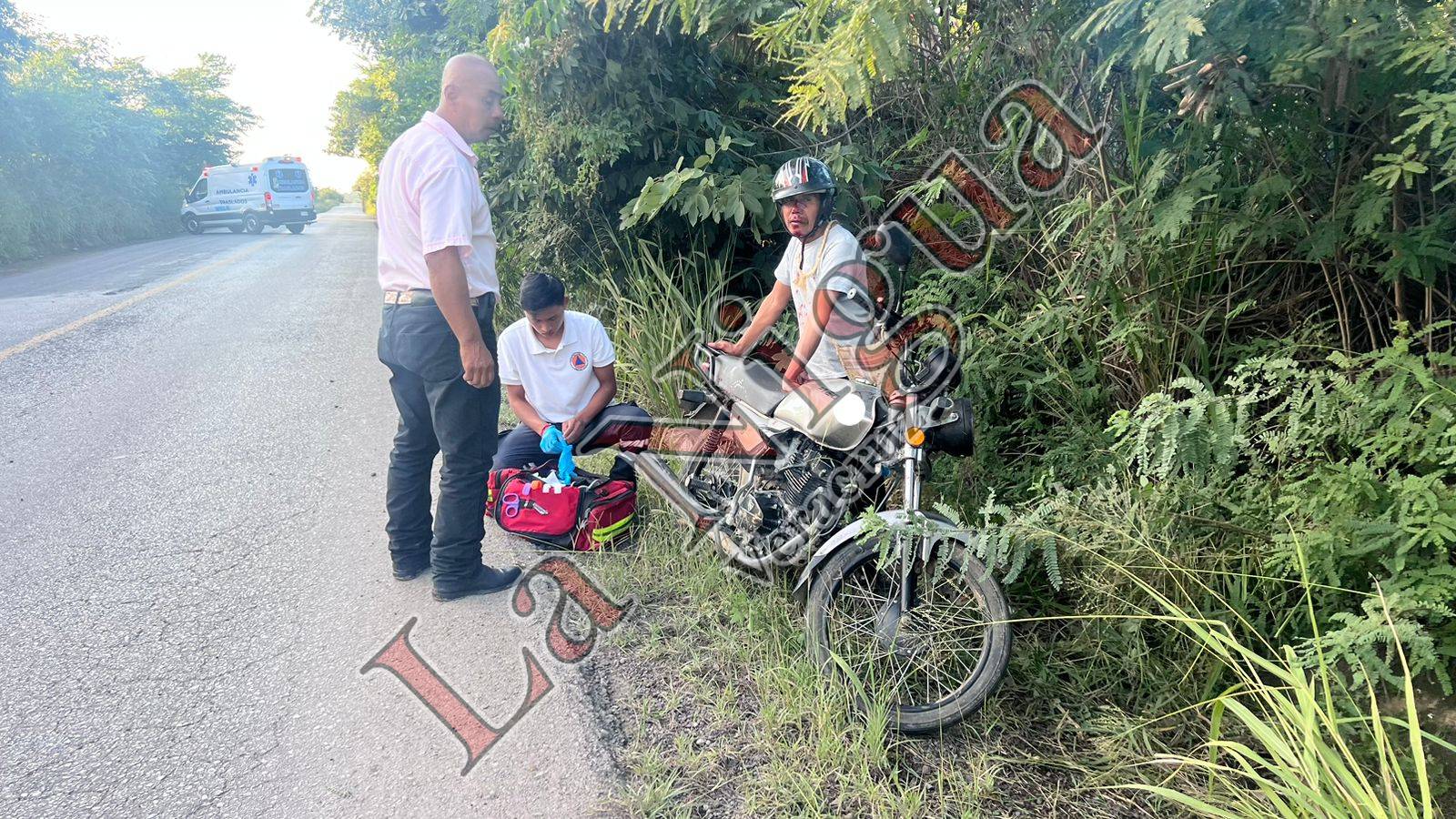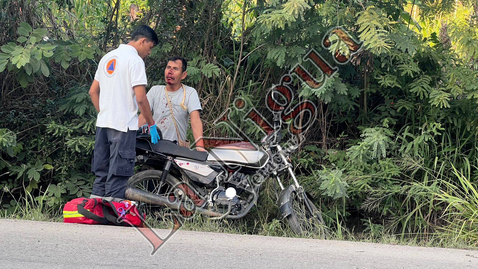 Con severas lesiones terminó un ebrio motociclista luego de derrapar sobre la carretera federal Alazán – Canoas la tarde del pasado Jueves.