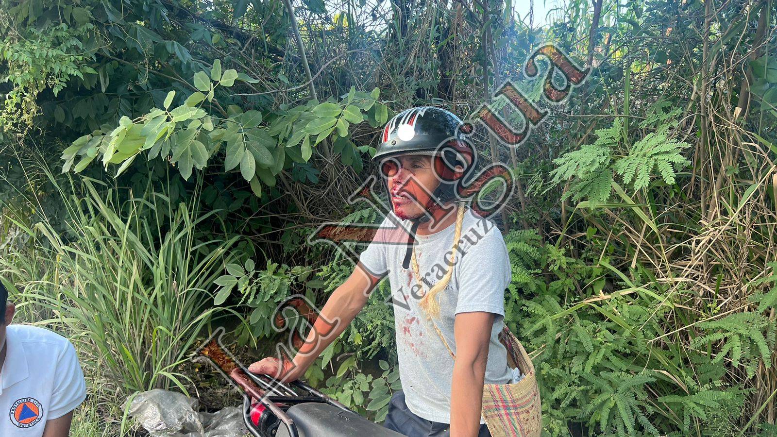 Se informó que el motociclista conducía alcoholizado, al pasar la curva derrapó y terminó fuera de la cinta asfáltica severamente lesionado.