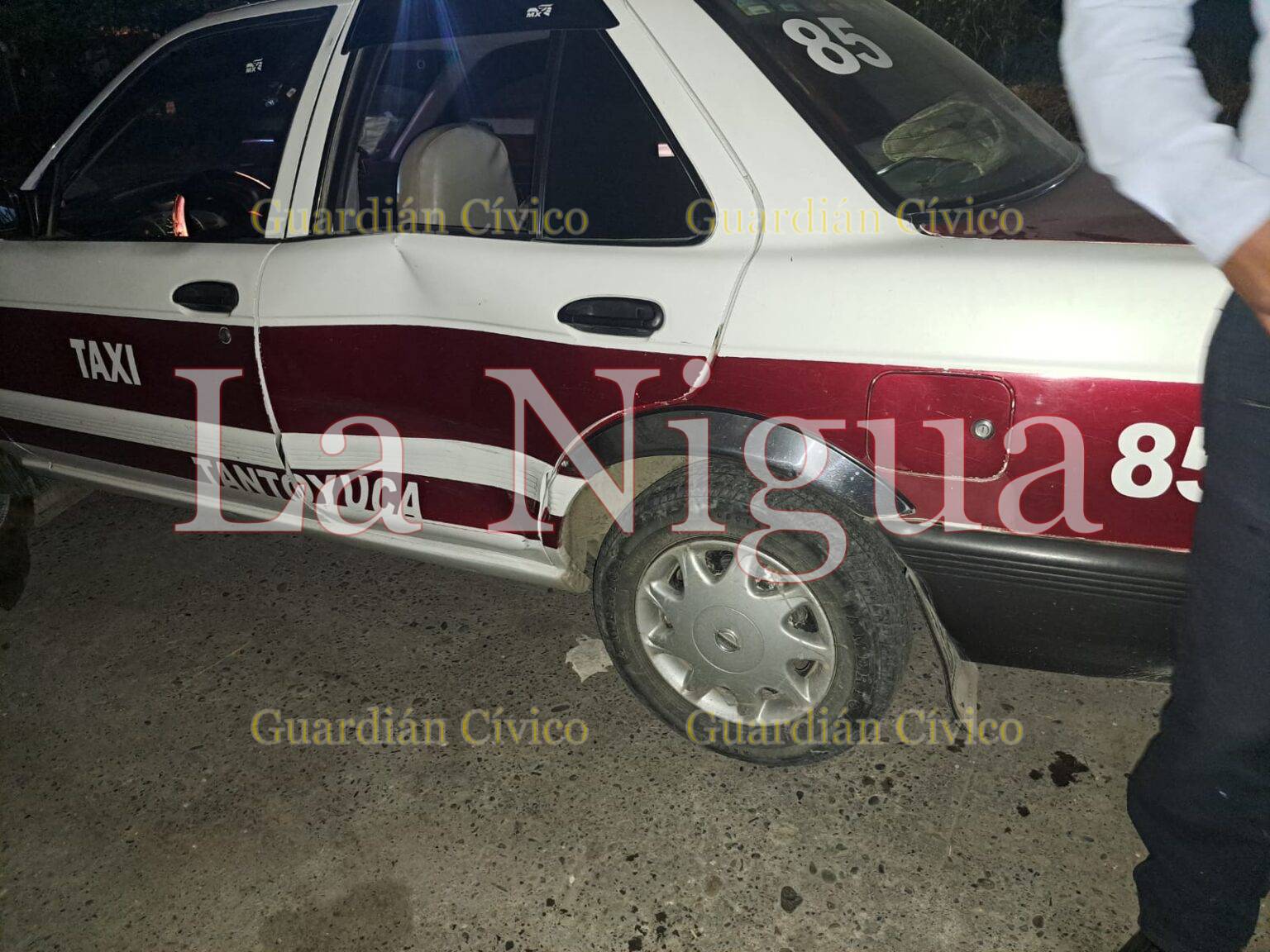 Fue el taxi marcado con el número económico 85 el cual recibió el impacto por la parte lateral izquierdo de la unidad, dejando dañada la puerta trasera del Nissan tsuru modalidad taxi.