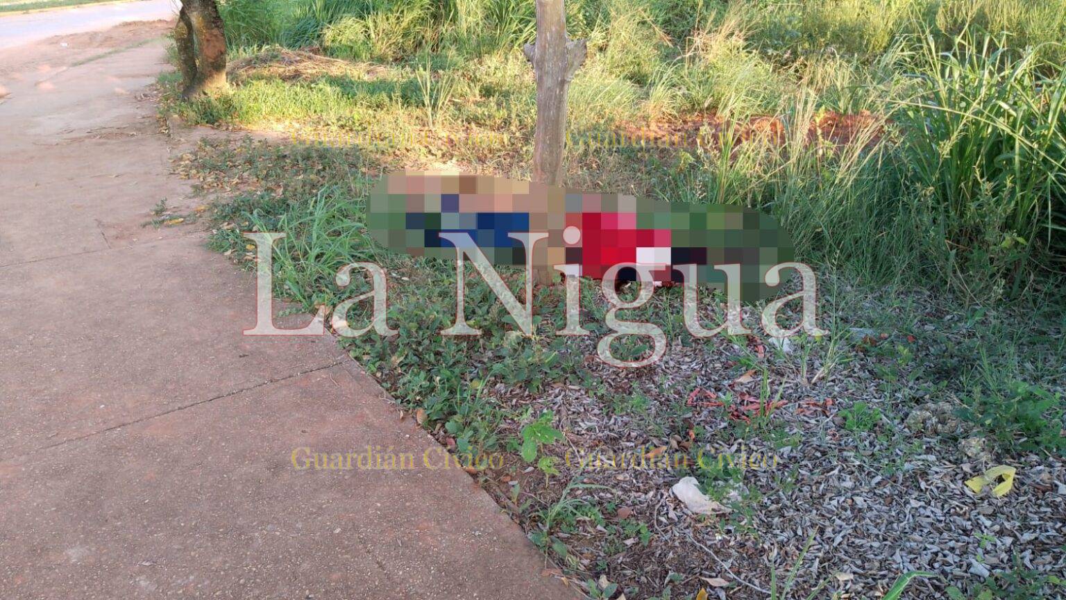 De acuerdo con vecinos, se escucharon algunos disparos y después de unos minutos se dieron cuenta que estaba tirada entre el monte una persona.