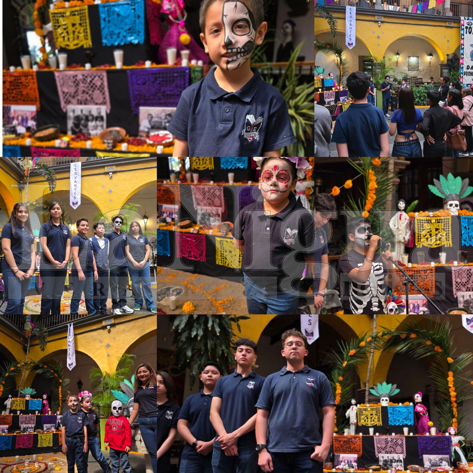 El altar fue instalado en el patio del Zevallos, lugar emblemático de la ciudad, y este año estuvo dedicado a honrar la memoria de los fundadores del colegio, quienes llegaron a México como parte del exilio español de 1939 y legaron una profunda vocación por la educación, la cultura y el humanismo.