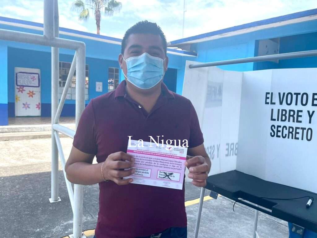 El Presidente Municipal Nahúm Álvarez Pellico, asistió al ejercicio de Revocación de Mandato, se presentó en la cabecera municipal a emitir su voto, exhortando a toda la ciudadanía, para que acudan y participen en este momento histórico para la vida política de nuestro país, construyendo una democracia participativa.