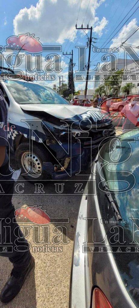Primeros reportes indican que un vehículo de la marca Volkswagen Pointer con placas de circulación YGA-519-B del estado de Veracruz, presuntamente, su conductor intentaba retornar, sin embargo, terminó siendo impactado por la unidad SPM -10 de la Policía Municipal.