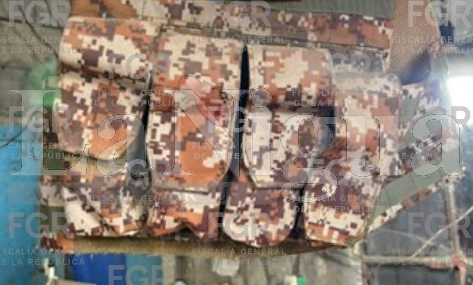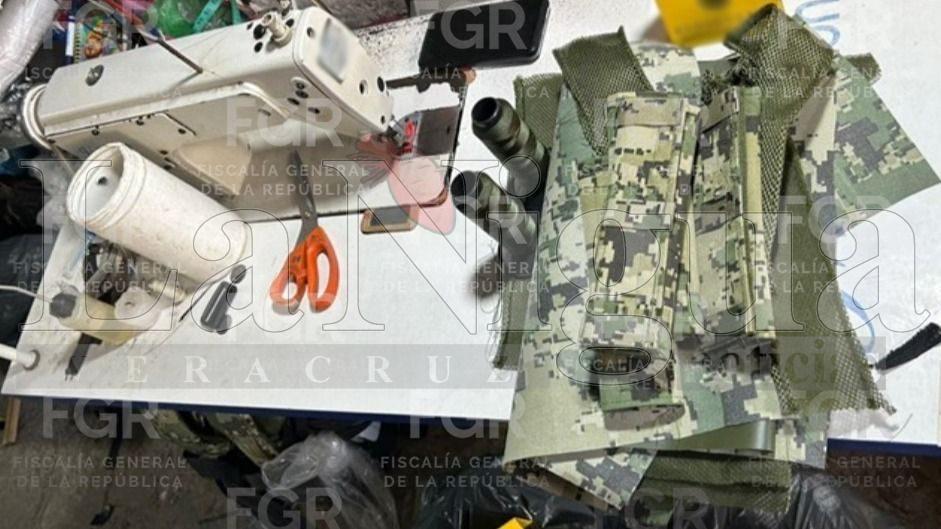 Las autoridades que conforman el Gabinete de Seguridad del Gobierno de México aseguraron seis máquinas de coser tipo industrial, una máquina cortadora de tela, seis chalecos verdes camuflados, seis chalecos color negro, algunos con insignias de la Policía Estatal, un chaleco verde con café camuflado, un rollo de tela color café con verde y rojo camuflado, un tramo de tela bordado con el nombre de una institución de las Fuerzas Armadas de México.