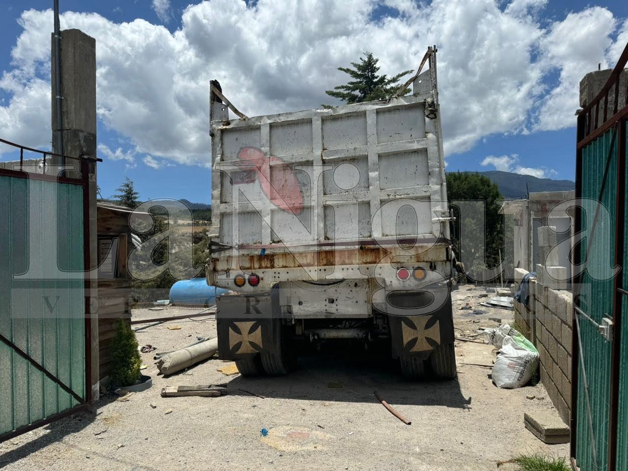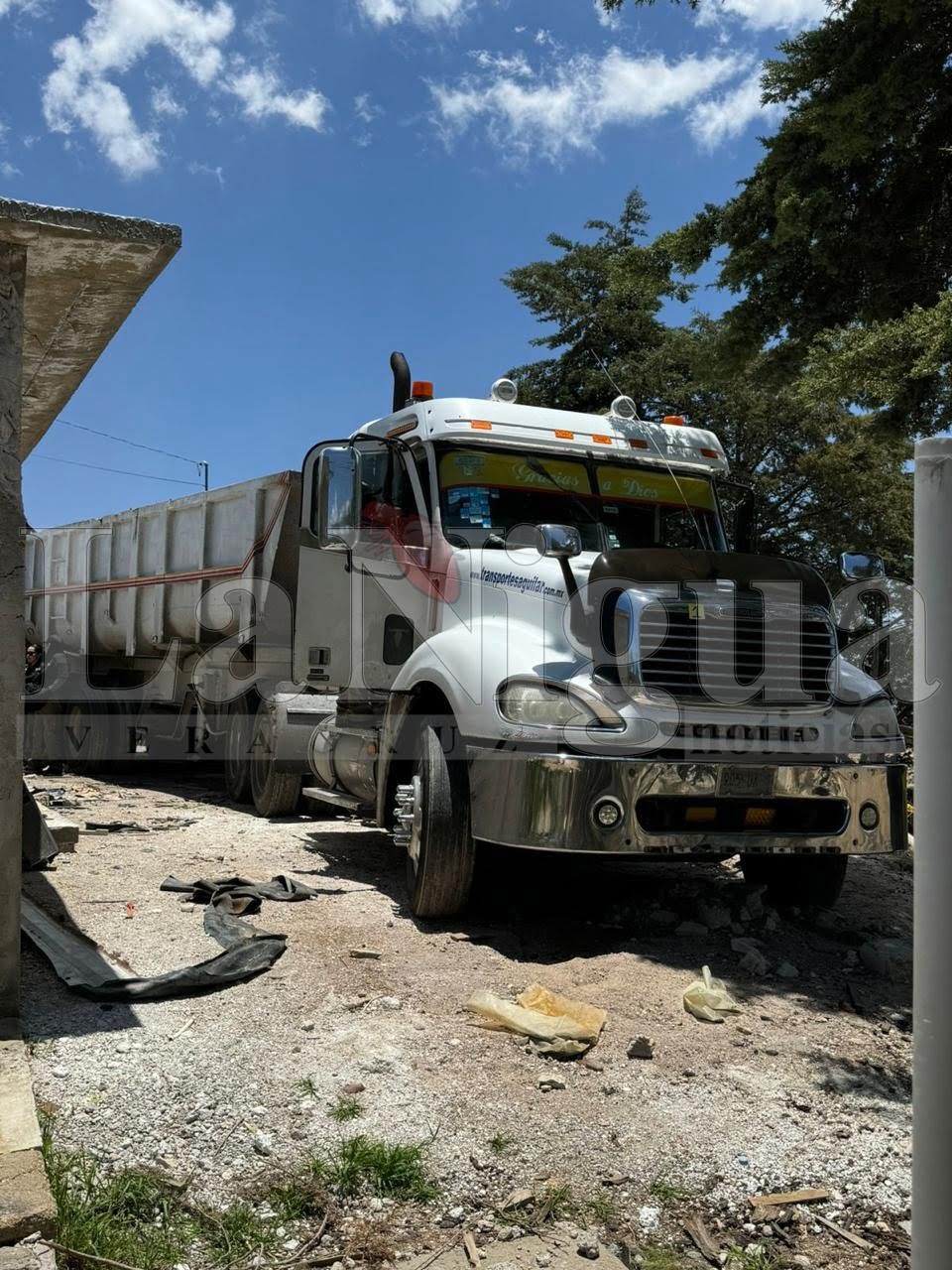 En el sitio se aseguró un tractocamión acoplado a un semirremolque tipo tolva, con placas de circulación del Servicio Público Federal, cargado con fierro molido, el cual contaba con reporte de robo.