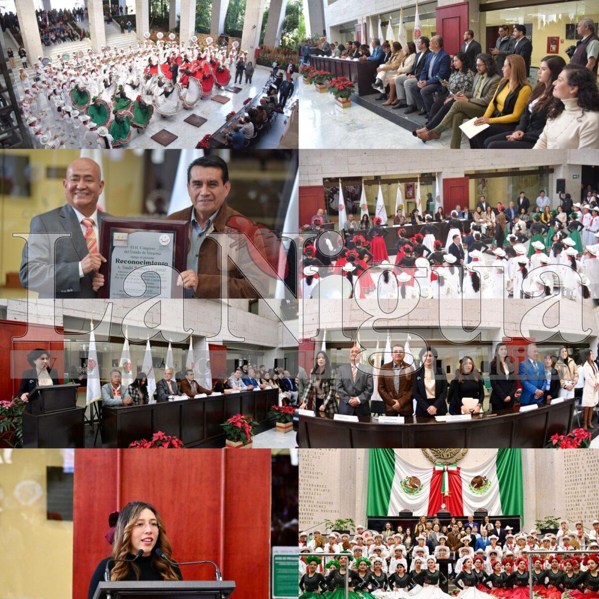 Xalapa, Ver., 13 de noviembre de 2025.- Es un honor para las y los integrantes de la LXVII Legislatura recibir en la casa del pueblo a este grupo de jóvenes talentos integrantes de la Delfines Marching Band, que con su entrega y dedicación han mostrado al mundo nuestra cultura y folklore, expresó la presidenta de la Mesa Directiva, diputada Naomi Edith Gómez Santos, al participar en la entrega de reconocimientos a miembros y directivos de la Delfines Marching Band de la Secundaria General 5 “Manuel R. Gutiérrez”.