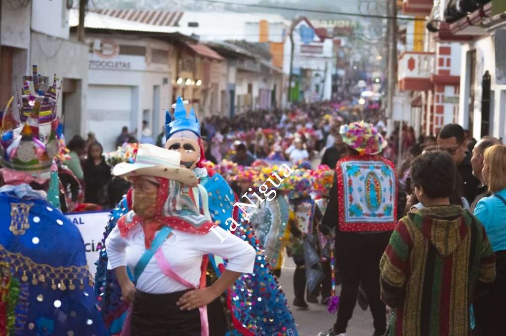 El recorrido se realizó en las principales calles de la ciudad de Huatusco donde danzantes y ciudadanía disfrutaron entre sombreros multicolor, machetes ataviados, capas y máscaras el ritmo del son tradicional de la jarana y violín, acompañados por los cascabeles que marcan el paso de avance.