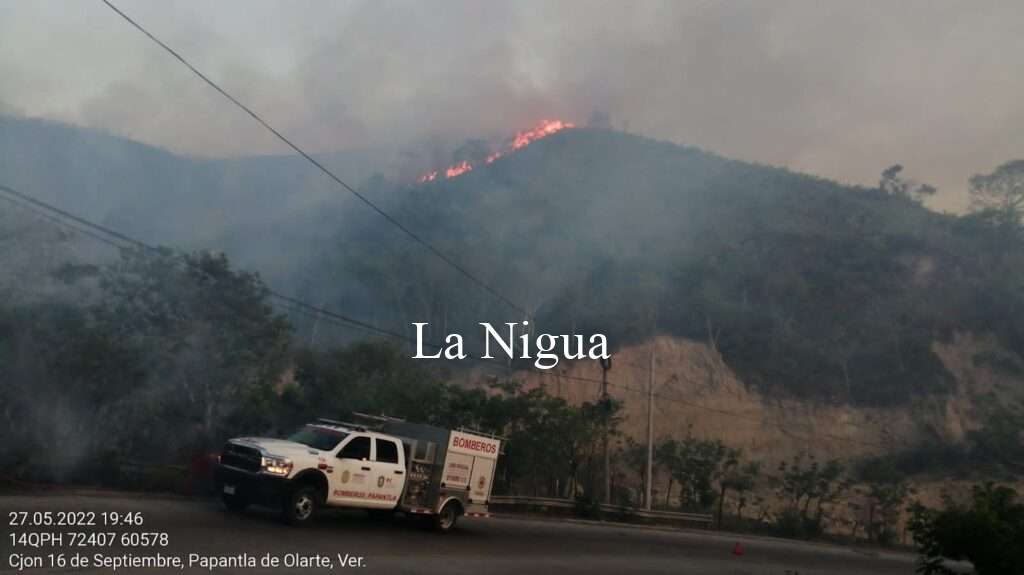 PAPANTLA, VER.- Un fuerte incendio de pastizales, que lleva varios horas, se salió de control tras los fuertes vientos y las altas temperaturas de los últimos días, que vienen amenazando a asentamientos humanos así como instalaciones de Petróleos Mexicanos en este municipio papanteco.