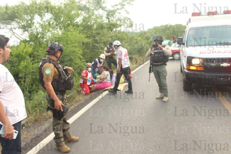 Fue alrededor de las 17:15 horas cuando reportaron a través del 911 un cruento choque, habiendo personas prensadas en los vehículos; la movilización fue rápida, sin embargo, los lesionados pudieron ser rescatados y dejados a la orilla de la carretera, debido a que el vehículo donde viajaba la familia lesionada quedó varios metros de la carretera y apunto estaba de caer a una presa.