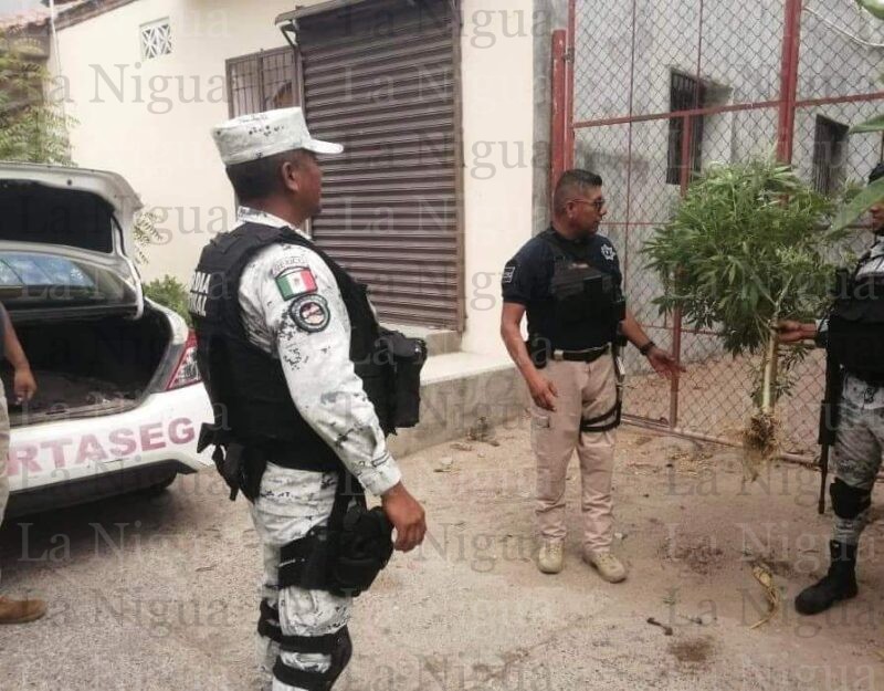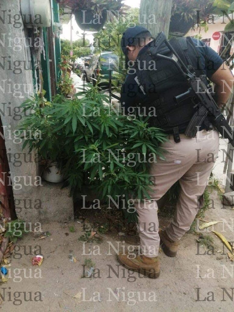 Fueron elementos de la policía municipal que arribaron al punto para indagar sobre la precedencia de la.planta pero al no haber algún responsable la arrancaron y en presencia de personal de La Guardia Nacional la destruyeron.
